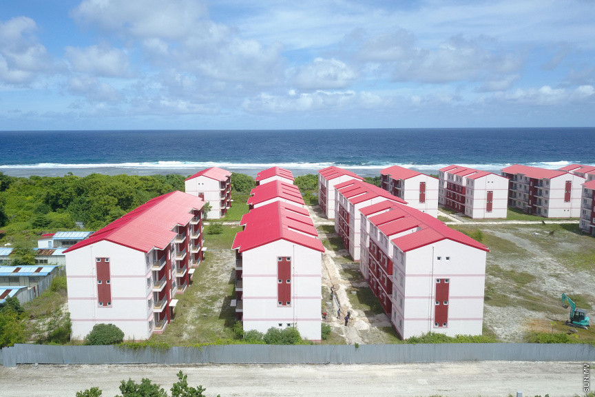 އައްޑޫ ސިޓީގައި ބޯހިޔާވަހިކަމުގެ ޕްރޮޖެކްޓްގެ ތެރެއިން އަޅާފައިވާ ފްލެޓްތަށް -- ސަން ފޮޓޯ/ ފަޔާޒު މޫސާ
