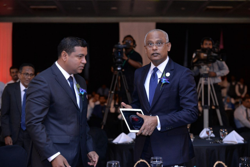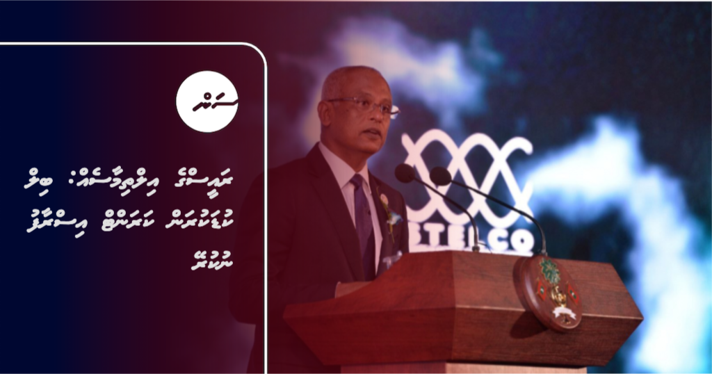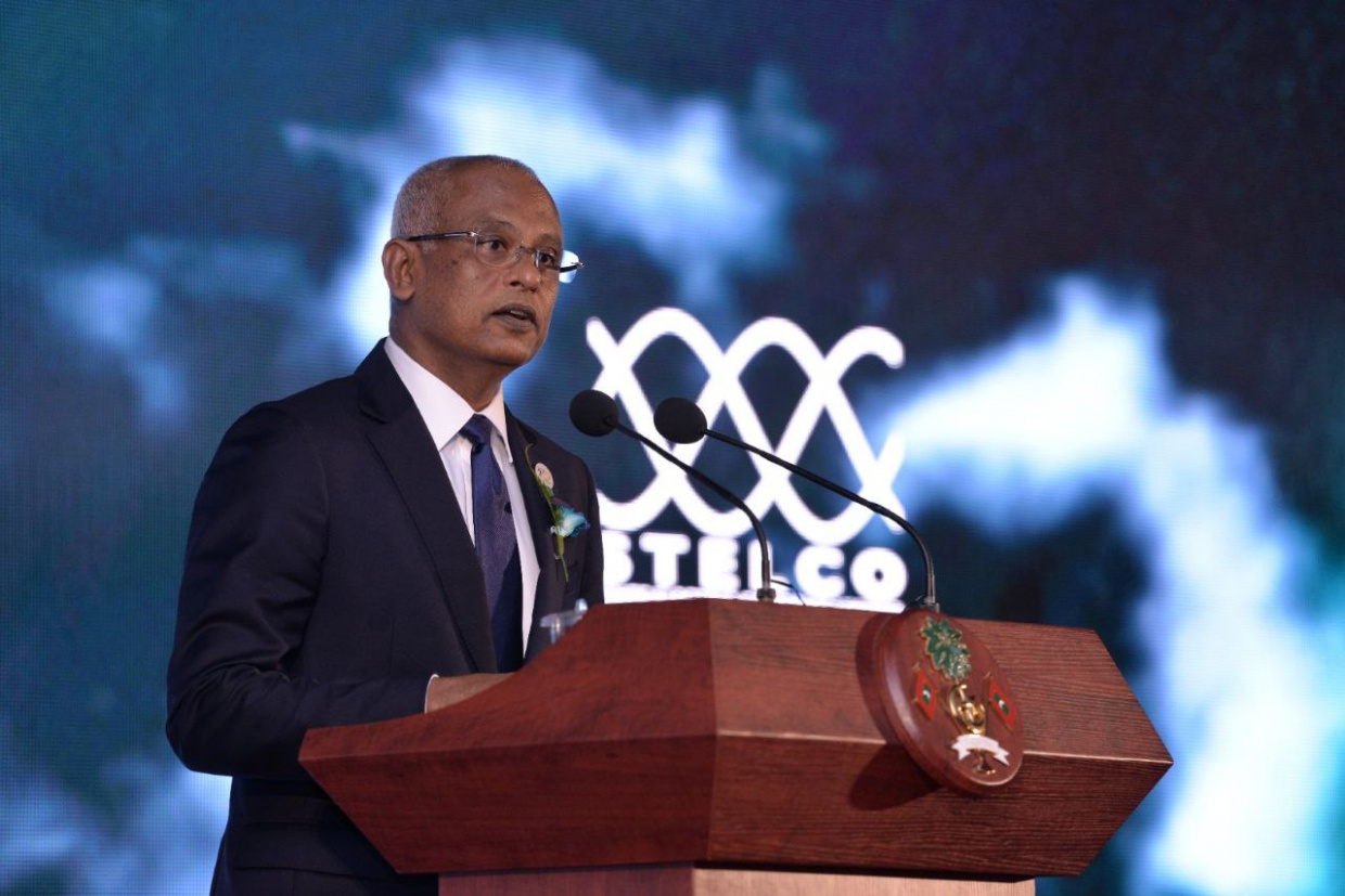 ސްޓެލްކޯއިން ފޯރުކޮށްދޭ ކަރަންޓުގެ ހިދުމަތަށް 70 އަހަރު ފުރުން ފާހަގަ ކުރުމަށް ބޭއްވި ޖަލްސާގައި ރައީސް އިބްރާހިމް މުހައްމަދު ޞާލިހު ވާހަކަފުޅު ދައްކަވަނީ-- ސަން ފޮޓޯ/ފަޔާޒު މޫސާ