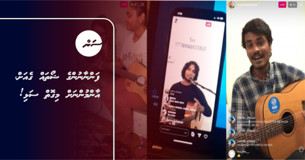 "ކަރަންޓިއުންސް" ނަމުގެ ހާއްސަ ހޭޝްޓެގެއް ބޭނުންކޮށްގެން ދުނިޔޭގެ މަޝްހޫރު ފަންނާނުން ދަނީ ސޯޝަލް މީޑިއާގައި ލައިވް ޝޯތައް ދެމުންނެވެ. އެ ޓްރެންޑާއެކު ދިވެހީންވެސް ވަނީ މިހާރު އާންމުން މުނިފޫހި ފިލުވައިދިނުމަށް ގިނަ ޝޯތަކެއް ދެމުންނެވެ.