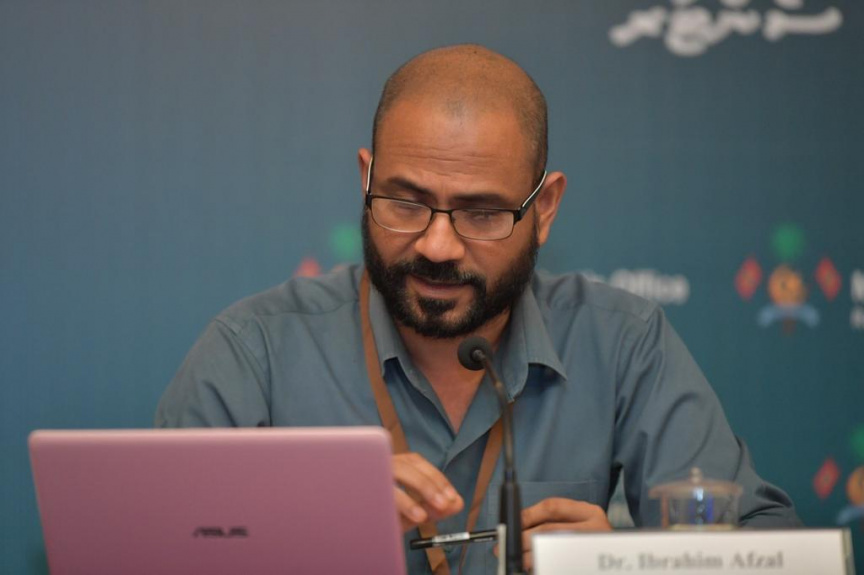 ނޫސްވެރިންގެ ބައްދަލުވުމުގައި ޑރ. އަފްޒަލް ވާހަކަ ދައްކަވަނީ -- ފޮޓޯ/ އެންއީއޯސީ
