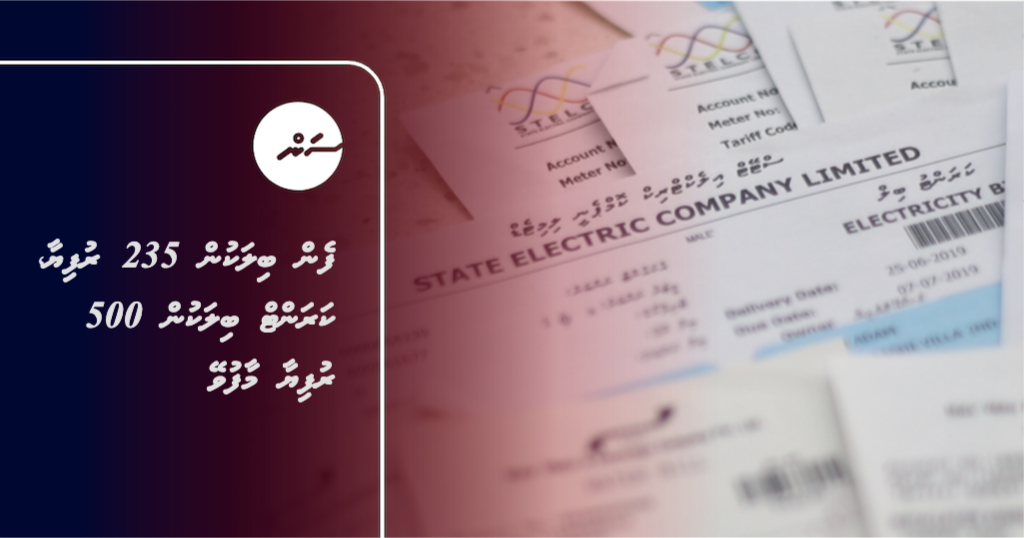 ކޮވިޑް-19 އާ ގުޅިގެން ރައްޔިތުންނަށް ލުއި ދިނުމުގެ ގޮތުން ފެނާއި ކަރަންޓުބިލުން ބައެއް އުނިކުރަން ނިންމި ނިންމުމުން ފެން ބިލަކުން އެވްރެޖްކޮށް 235 ރުފިޔާ އާއި ކަރަންޓު ބިލަކުން ގާތްގަނޑަކަށް 500 ރުފިޔާ ކުޑަވެފައިވާނެ ކަމަށް ފިނޭންސް މިނިސްޓަރު އިބްރާހީމް އަމީރު ވިދާޅުވެއްޖެ އެވެ.