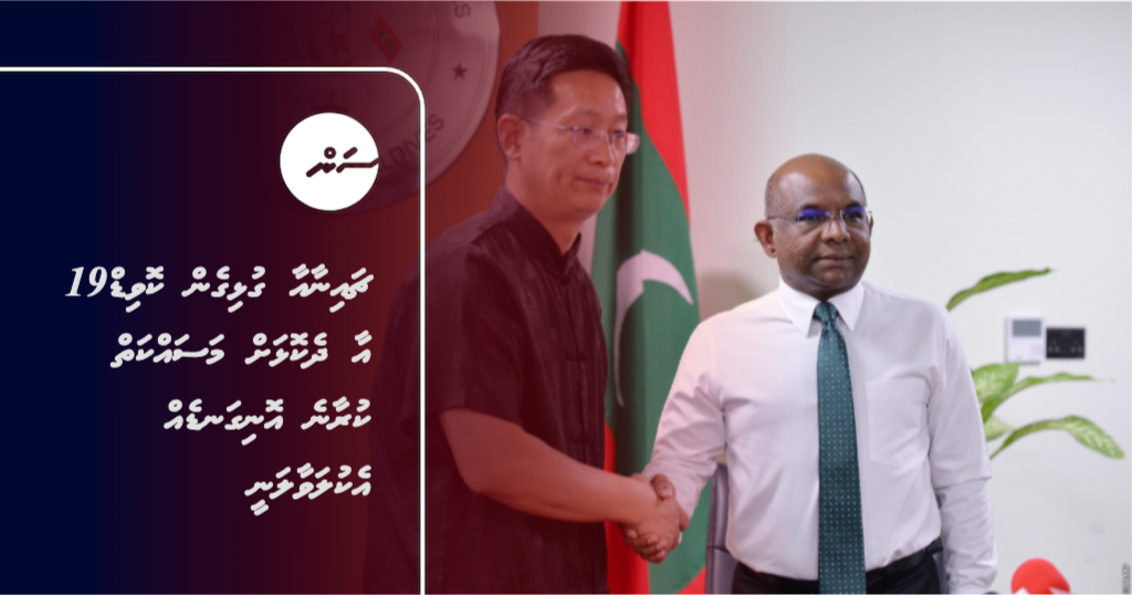 ކޮވިޑް19 އިން އަރައިގަތުމަށް ރާއްޖެއާއި ޗައިނާ ގުޅިގެން މަސައްކަތްކުރުމަށާއި، އެމަސައްކަތްކުރާނެ އޮނިގަނޑެއް ރޭވުމާ ބެހޭ ގޮތުން ފޮރިން މިނިސްޓަރު އަބްދުﷲ ޝާހިދާއިި ޗައިނާއިން ރާއްޖެއަށް ކަނޑައަޅާފައި ހުންނަވާ ސަފީރު ޖަންގް ލީޖޮންގް މަޝްވަރާކުރައްވައިފި އެވެ.