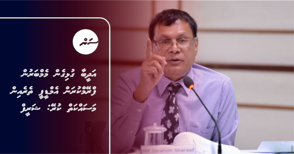 އެމްޑީޕީ މެމްބަރު ޝަރީފު މިގޮތަށް ވިދާޅުވީ، މިއަދު ބޭއްވި ރައްޔިތުންގެ މަޖިލީހުގެ މާލިއްޔަތު ކޮމިޓީގެ ބައްދަލުވުމުގައި ވާހަކަ ދައްކަވަމުންނެވެ.