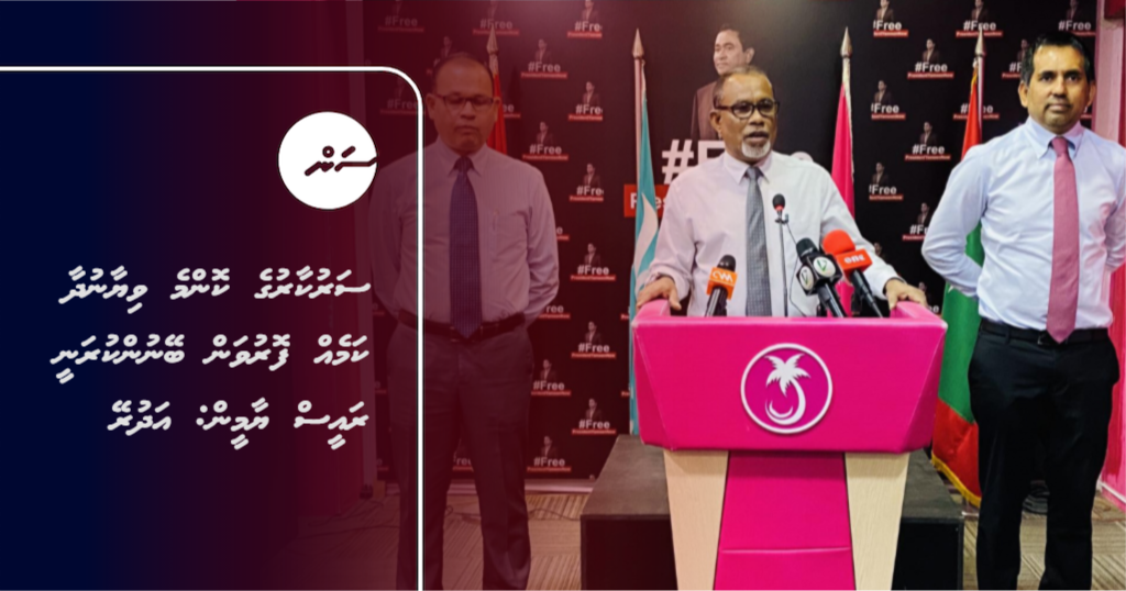 "ރައީސް ޔާމީންގެ އިސްތިއުނާފްގެ މައްސަލަ ކުރިއަށް ނުގެންގޮސް އަނެއްކާ މިހާރު ރައްޔިތުންނަށް އެމްއެމްޕީއާރުސީއަކީ ރައީސް ޔާމީންކަން ރައްޔިތުންނަށް ދައްކަދިނުމަށްޓަކައި މަސައްކަތް މިކުރަނީ، ހަގީގަތުގައި މީގެ މުގުލުގައި ތިބި މީހުން ގޭގައި ބައިތިއްބައިފައި. އަބްދުއްރަހީމް ވިދާޅުވި ގޮތަށް ޕީޖީއާއި ސަރުކާރާއި މިނިވަން މުވައްސަސާތަކާ މިއަދު އެއޮތީ އެބޭފުޅުންގެ އަތް ޕުޅުގައި މޮޑޭ ފުއްގަނޑެއްހެން،" ސައީދު ވިދާޅުވިއެވެ.