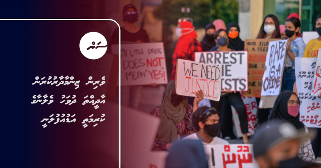 މުޒާހަރާ އިންތިޒާމުކުރާ ފަރާތުން ޑިމާންޑުކުރަނީ އަންހެނުންގެ ރައްކާތެރިކަން ކަށަވަރުކޮށްދިިނުމަށާއި ކުށްވެރިން އިންސާފުގެ ކުރިމައްޗަށް ގެނެސް އިންސާފު ގާއިމް ކުރުމަށެވެ.