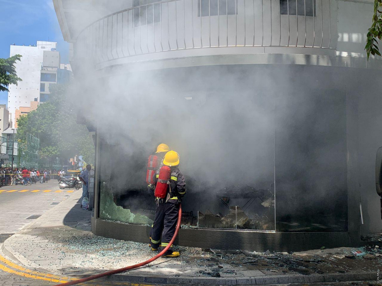 ބޮޑުތަކުރުފާނު މަގުގައި ހުންނަ ކެފޭ ޓިއޯލޯ އާއި އެ ކެފޭއާ ޖެހިގެން ހުންނަ ސްޓޭޓް ބޭންކް އޮފް އިންޑިއާ (އެސްބީއައި)ގެ އިމާރާތުގައި އަލިފާން ރޯވެ ހިނގި ހާދިސާގައި ބޮޑެތި ގެއްލުންތަކެއްވި އެވެ.
