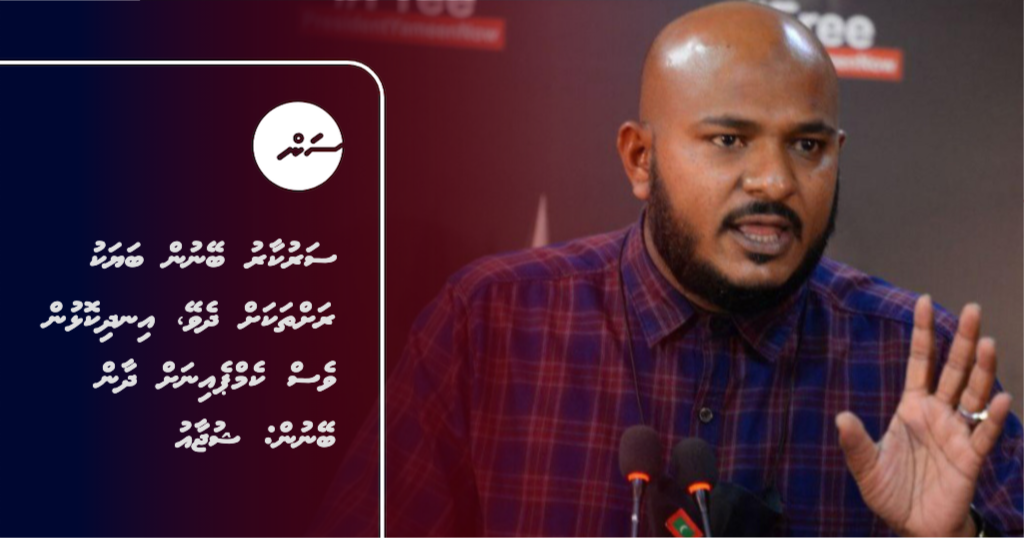 "ކުރިއަށް އޮތީ ލޯކަލް ކައުންސިލް އިންތިހާބް. އަޅުގަނޑުމެން ވެސް ބޭނުން އަޅުގަނޑުމެންގެ ކެނޑިޑޭޓުންނަށް ތާއިދު ހޯދަން ދާން ބޭނުން. މިއީ ކޮންކަހަލަ މިނިވަން ގައުމެއް. މިމީހުން ބޭނުން އެއްޗެއް ހަދައި އަޅުގަނޑުމެން ރަށު ބަންދުގައި މުޅި މޫނުގައި ފޮތިއަޅުވާފައި ގޭގައި އަތް ދޮންނަން ބައިންދާފައި،" ޝުޖާއު ވިދާޅުވި އެވެ.