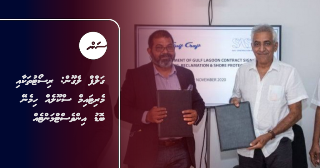 މިކަމާ ގުޅޭ އެމްއޯޔޫގައި ސޮއިކުރެއްވީ ގަލްފް ކްރާފްޓްގެ ޗެއާމަން މުހައްމަދު ހުސައިން އަލްޝާލީ އަދި އެސްއޭއެސްއީގެ މެނޭޖިން ޑިރެކްޓަރު ސައުދުﷲ އަހްމަދު އެވެ.