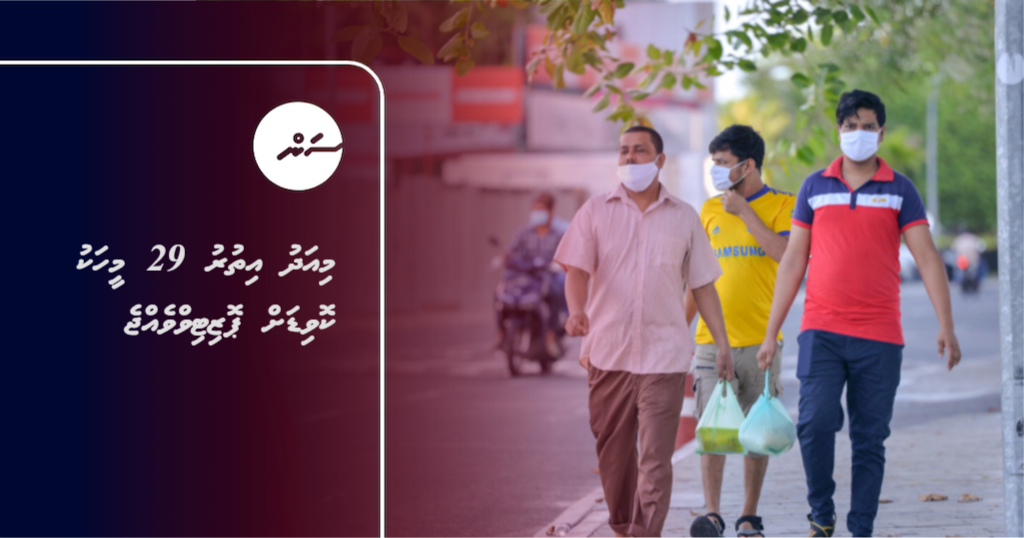 ފާއިތުވެދިޔަ 24 ގަޑިއިރުގެ ތެރޭގައި ނެގި 1360 ސާމްޕަލުން މިއަދު ރާއްޖެއިން އިތުރު 29 މީހަކު ކޮވިޑް19އަށް ޕޮޒިޓިވްވެއްޖެ އެވެ.