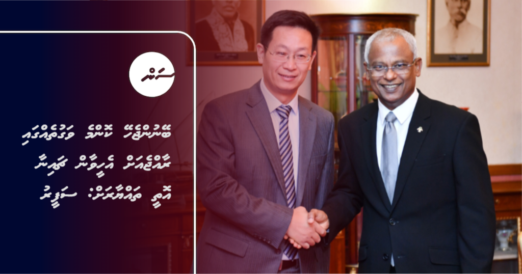 ޗައިނާ ސަފީރު ވިދާޅުވީ މިއަދު ފޮރިން މިނިސްޓަރު އަބްދުﷲ ޝާހިދު އާއެކު ބައްދަލުވުމެއްގައި ލޯނުތަކާ ގުޅޭގޮތުން މަޝްވަރާކުރެއްވި ކަމަށާއި ޗައިނާގެ ލޯނުތައް ދެއްކުމުގައި ދީފައިވާ ލުއިތަކަށް މިނިސްޓަރު ޝުކުރުއަދާކުރެއްވި ކަމަށެވެ.