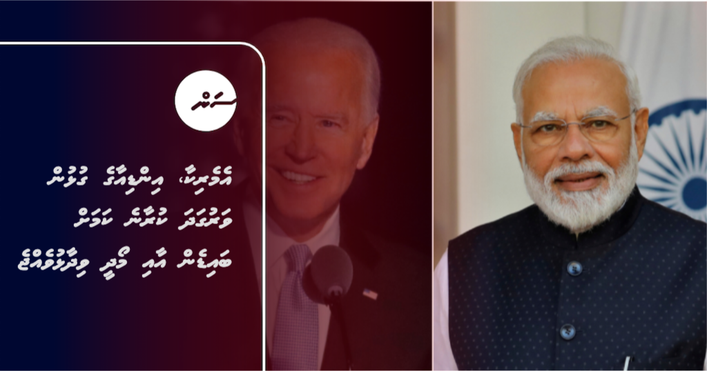ވޮޝިންޓަން (ނޮވެމްބަރު 19): އެމެރިކާގެ ރިޔާސީ އިންތިހާބު ކާމިޔާބު ކުރެއްވި ޑިމޮކްރެޓިކް ކެންޑިޑޭޓު ޖޯ ބައިޑެން އާއި އިންޑިއާގެ ބޮޑުވަޒީރު ނަރެންދުރަ މޯދީ ފޯނުން ވާހަކަ ދައްކަވާ، ދެ ގައުމުގެ ގުޅުން އިތުރަށް ވަރުގަދަ ކުރަން އެއްބަސްވެވަޑައިގެންފި އެވެ.