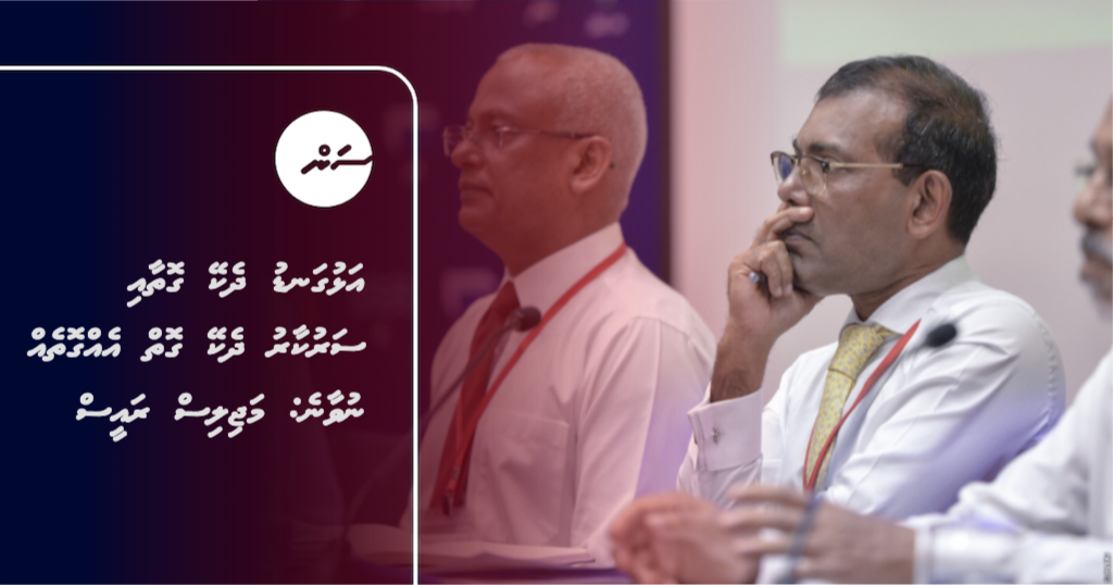 ކަންކަމުގައި ސަރުކާރުން ދެކޭ ގޮތާއި މަޖިލިސް ރައީސް ދެކޭ ގޮތް އެއް ގޮތް ވާކަށް ނުޖޭހޭ ކަމަށް ރައްޔިތުންގެ މަޖިލިސް ރައީސް މުހައްމަދު ނަޝީދު ވިދާޅުވެއްޖެ އެވެ.