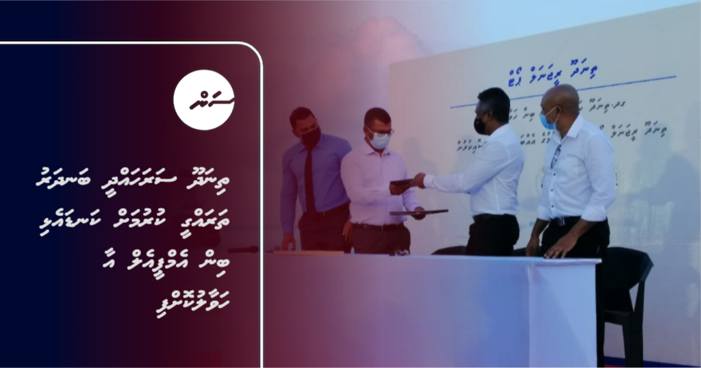 އެމްޕީއެލް އާއި އެމްޓީސީސީ އާއި ދެމެދު މިއަދު ސޮއިކުރި އެއްބަސްވުމުގެ ދަށުން ތިނަދޫ ޕޯޓު ގާއިމް ކުރާ ބިމުގައި ބިން އެއްވަރުކޮށް ސެކިޔުރިޓީ ފެންސް ޖަހައި ސްޓޯމް ވޯޓާ ޑްރެއިނޭޖު ގާއިމް ކުރާނެއެވެ.