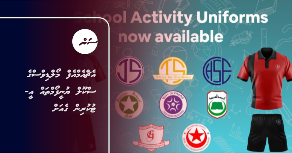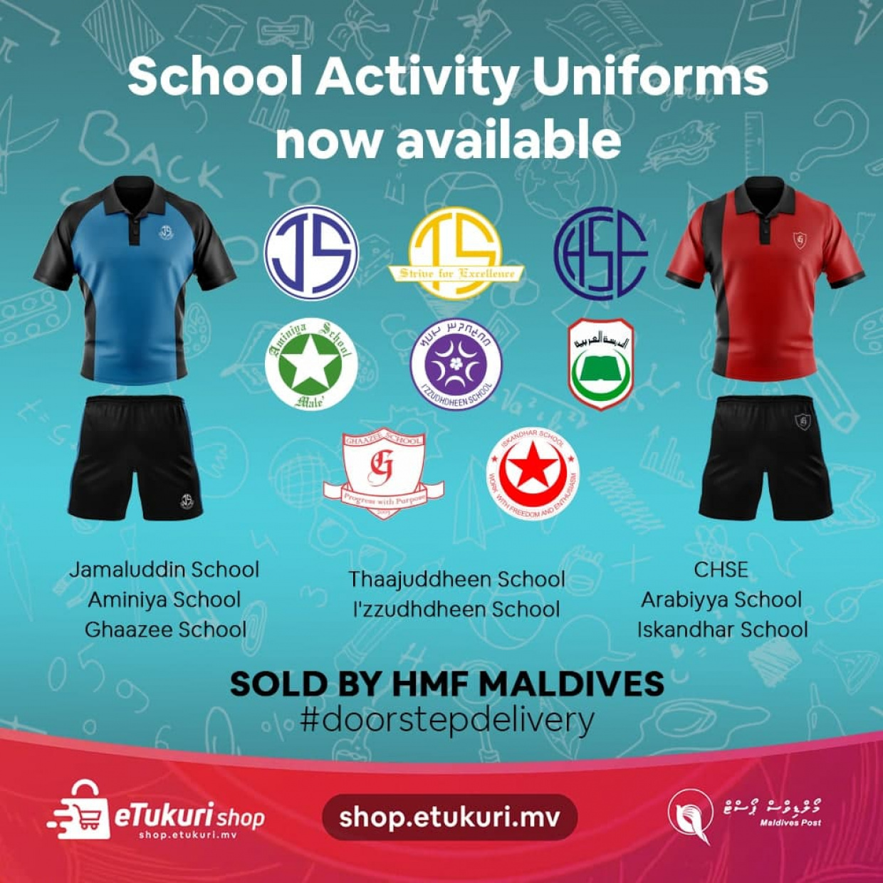 ގިނައަދަދެއްގެ ސްކޫލް ތަކުގެ އެކްޓިވިޓީ ޔުނީފޯމް ފޯރުކޮށްދޭ "އެޗްއެމްއެފް މޯލްޑިވްސް" ގެ ސްކޫލް ޔުނީފޯމްތައް މޯލްޑިވްސް ޕޯސްޓްގެ "އީ-ޓުކުރި ޕްލެޓްފޯމް" އިން އޮންލައިންކޮށް ގަނެވޭނެ އިންތިޒާމް ހަމަޖައްސައިފި އެވެ.