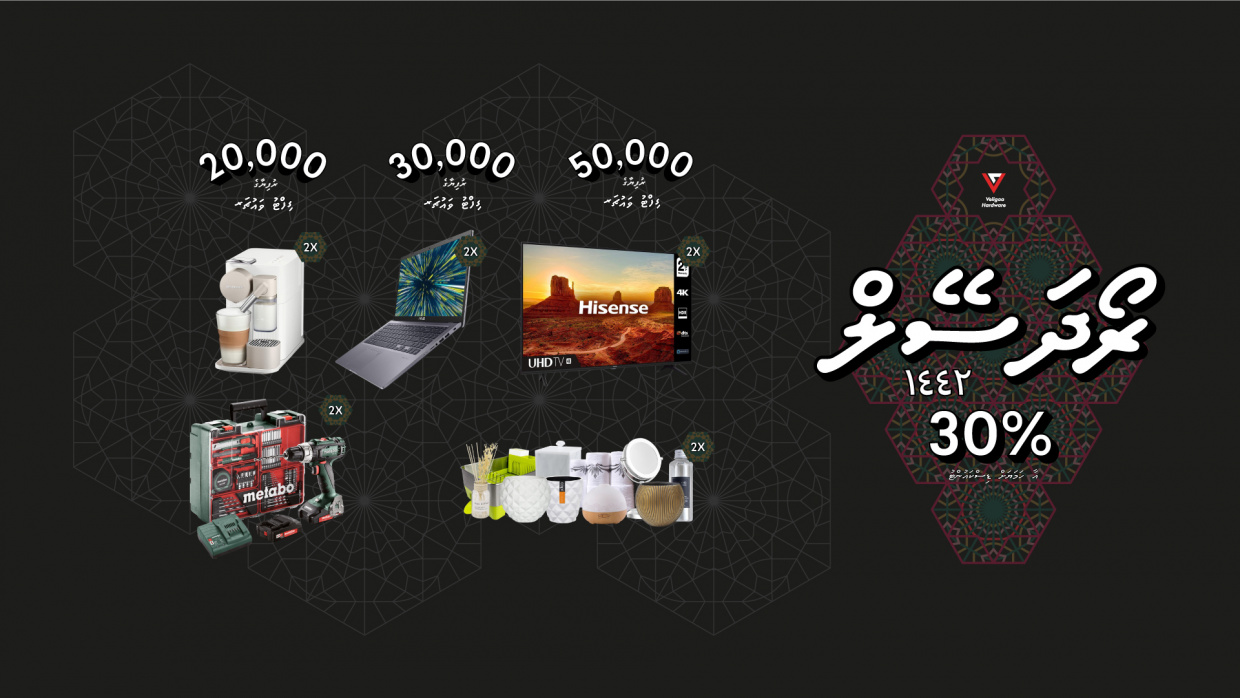 މިއަދުން ފެށިގެން އޭޕްރީލް 20 ގެ ނިޔަލަށް ކުރިއަށް ގެންދާ މި ސޭލްގައި 30 ޕަސެންޓާ ހަމައަށް ޑިސްކައުންޓު ލިބޭނެ އެވެ.