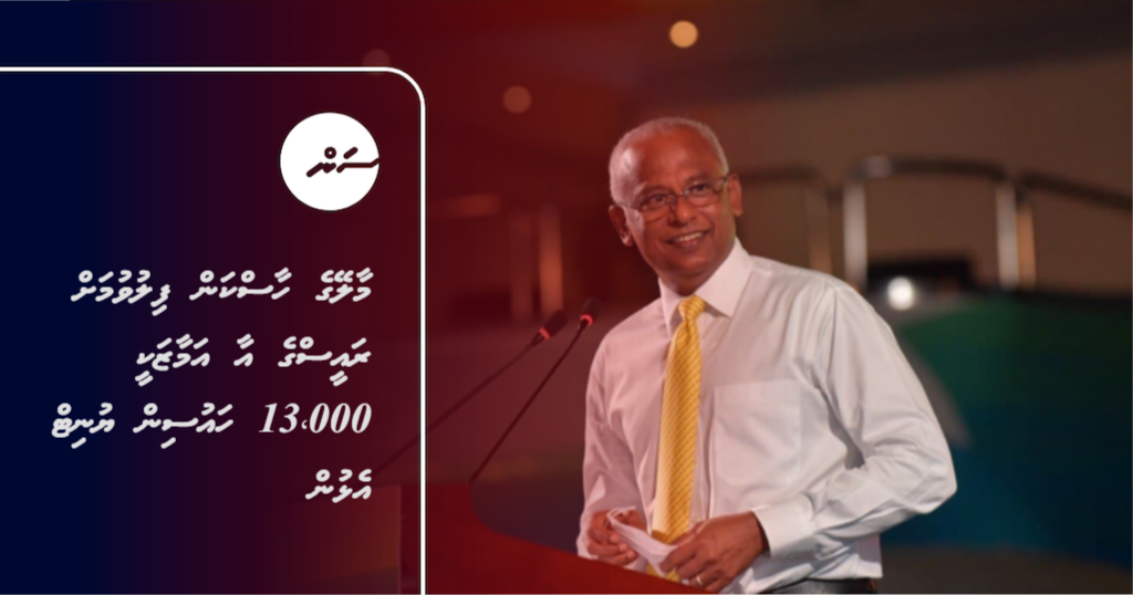 ހޮނިހިރު ދުވަހު ބާއްވާ ކައުސިލް އިންތިހާބުގެ އެމްޑީޕީ 'ރަށްވެހި ފަތިސް' ކެމްޕެއިން ނިންމާލުމަށް މިރޭ ރަސްދޫ ފަޅުގައި ބާއްވާ ޖަލްސާގައި ވާހަކަ ދައްކަވަމުން ރައީސް ވަނީ 5،000 ހައުސިން ޔުނިޓު އަޅާނެ ކަމުގެ ވައުދު ތަކުރާރުކޮށްފައެވެ. ރައީސް ވިދާޅުވީ، މިހާރު އާމަޒަކީ އެ އަދަދު 13،000އަށް ހެދުން ކަމަށެވެ.
