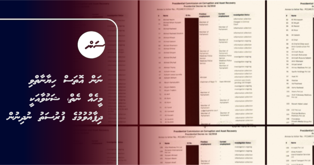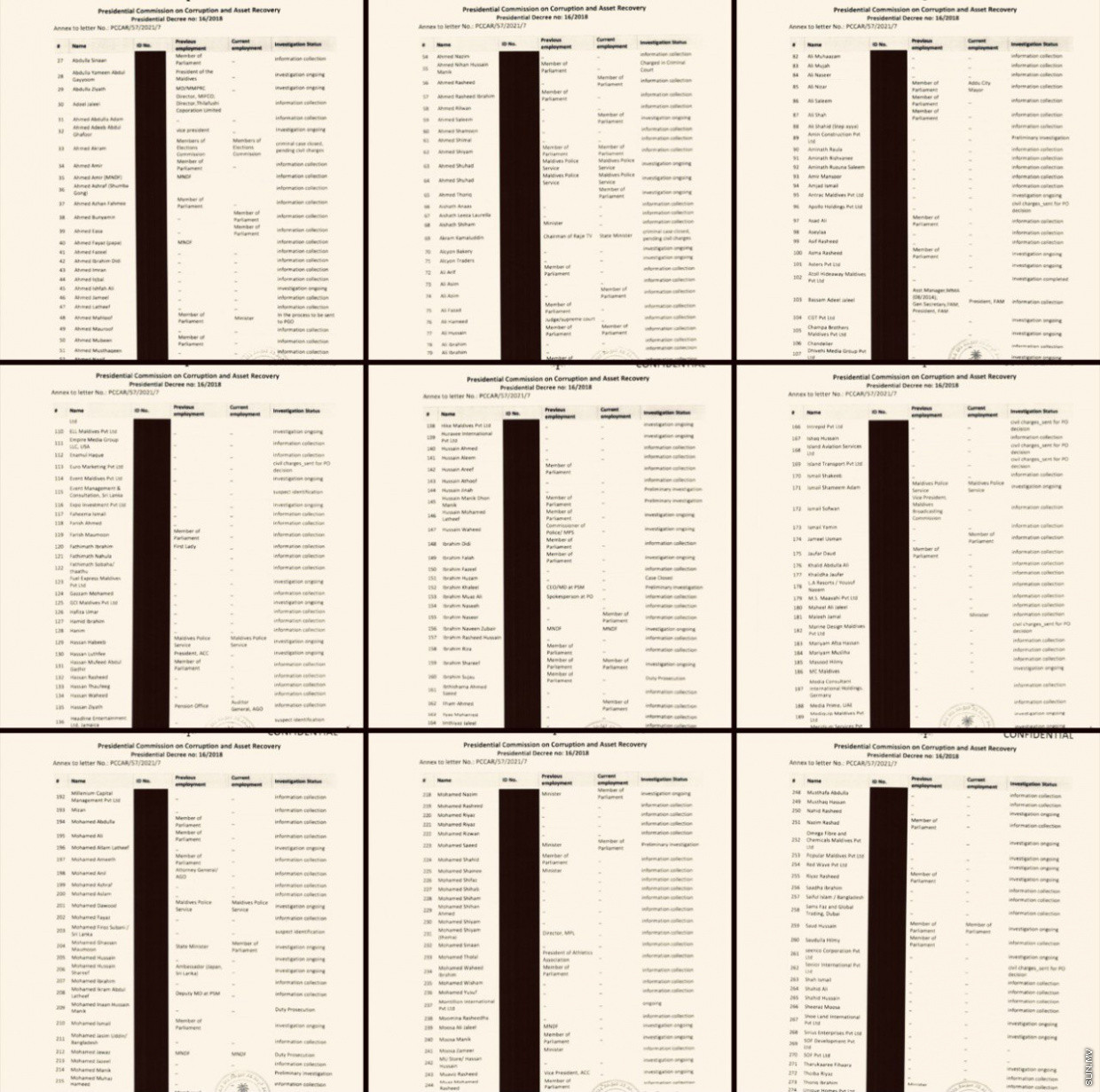 ލިސްޓުގައި 281 ނަމުގެ ތެރެއިން މައުލޫމާތު އެއްކުރުމުގެ މަރުހަލާގައި 176 މީހެއްގެ ނަން އޮތް ކަމަށް މަޖިލީހުން އިއްޔެ އާންމު ކުރި ރިޕޯޓުން ދައްކަ އެވެ.