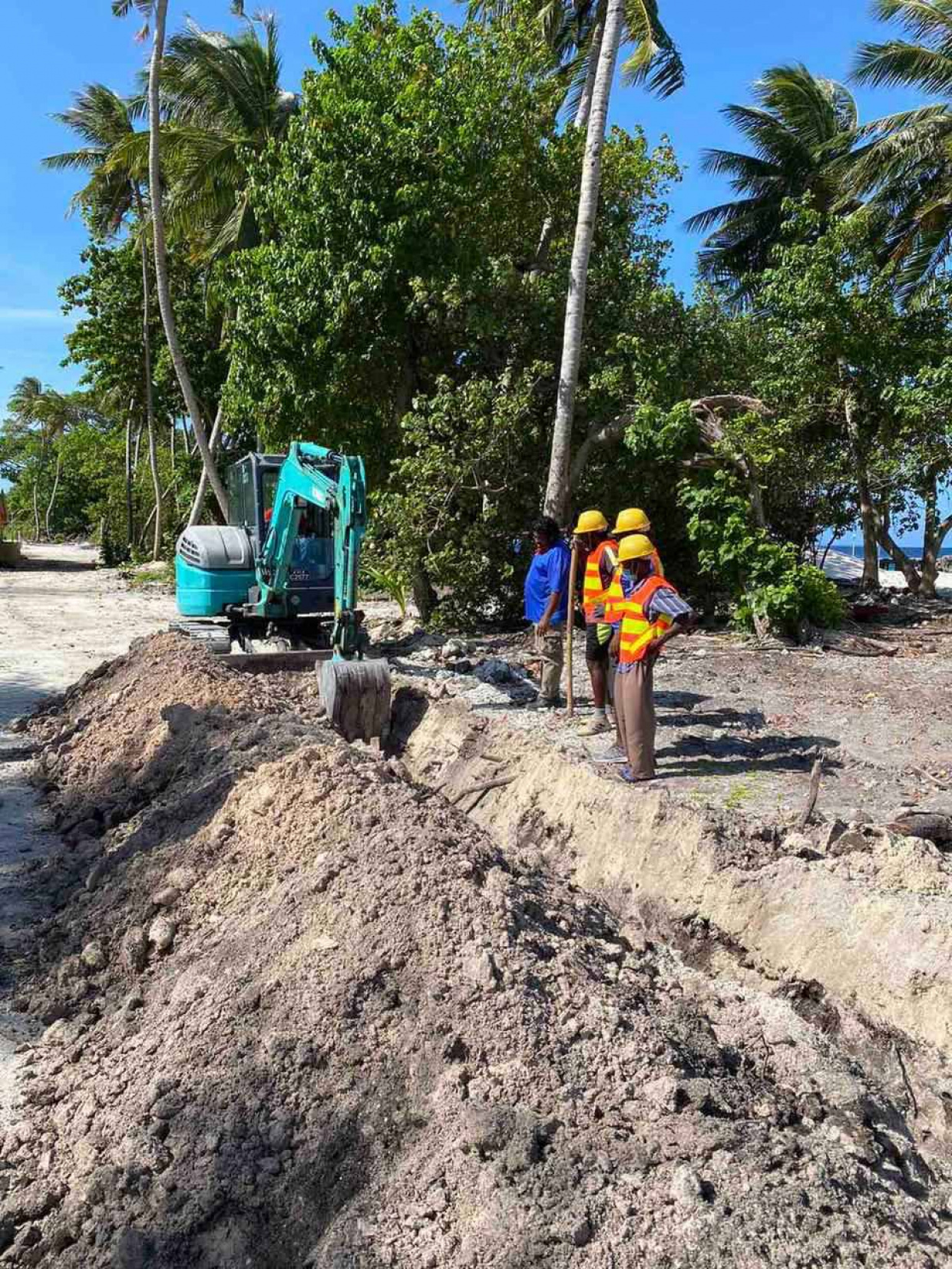 އެ މަޝްރޫއުގެ ދަށުން މިހާރު ކުރިއަށްދަނީ ފެން ޕްލާންޓް ބެހެއްޓުމަށް އިމާރާތްކުރާ ފެސިލިޓީ ބިލްޑިން އިމާރާތުގެ މަސައްކަތްތަކާއި ފެނުގެ މައި ނެޓްވޯކުގެ ހޮޅި ވަޅުލުމުގެ މަސައްކަތްތަކެވެ.
