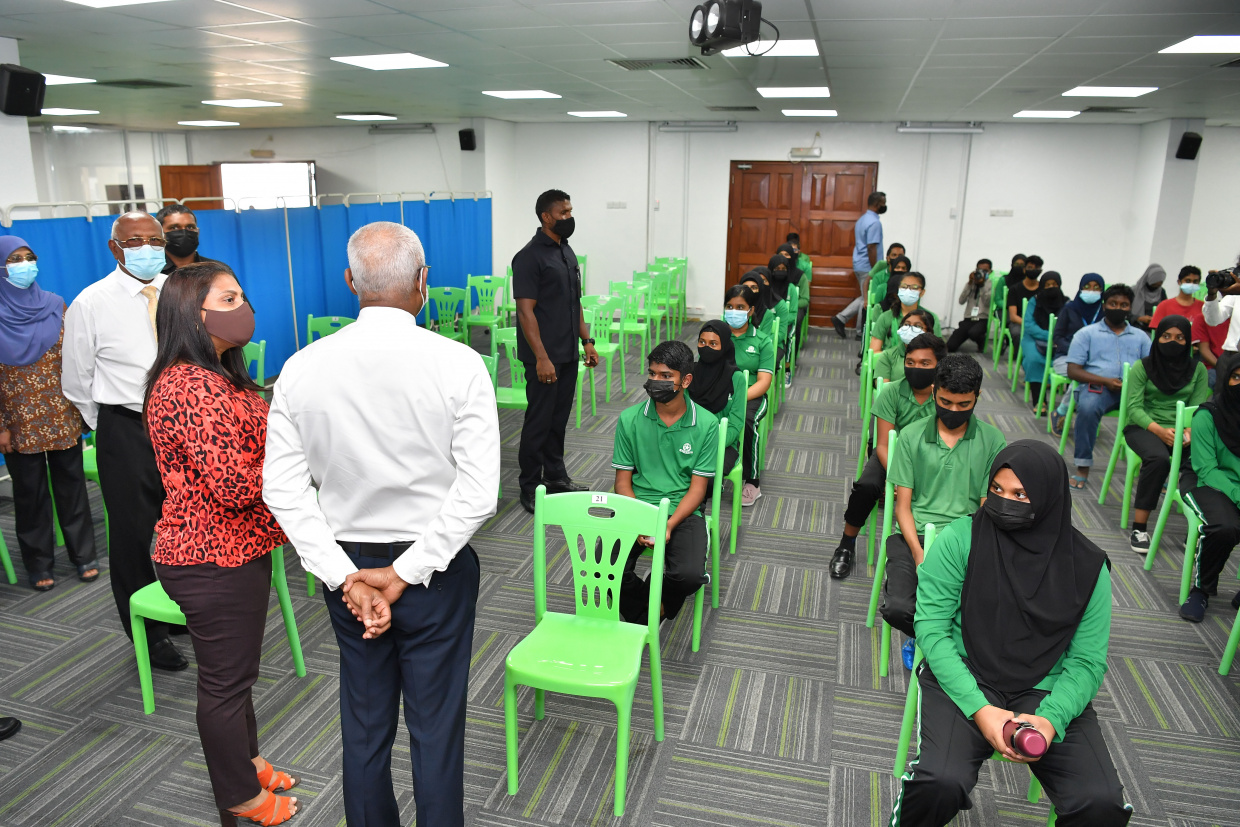 އުމުރުން 12 އަހަރާއި 17 އަހަރާ ދެމެދުގެ ސްކޫލް ދަރިވަރުންނަށް ކޮވިޑް-19 ވެކްސިން ދިނުމުގެ އިންތިޒާމުތައް ރައީސުލްޖުމްހޫރިއްޔާ އިބްރާހިމް މުހައްމަދު ސޯލިހު ބައްލަވާލައްވަފައިފިއެވެ.