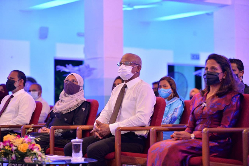 ސެޕްޓެމްބަރު 6، 2021: ރެހެންދި އެވޯޑު ދިނުމުގެ ހަފްލާގައި ރައީސް އިބްރާހިމް މުހައްމަދު ސޯލިހު