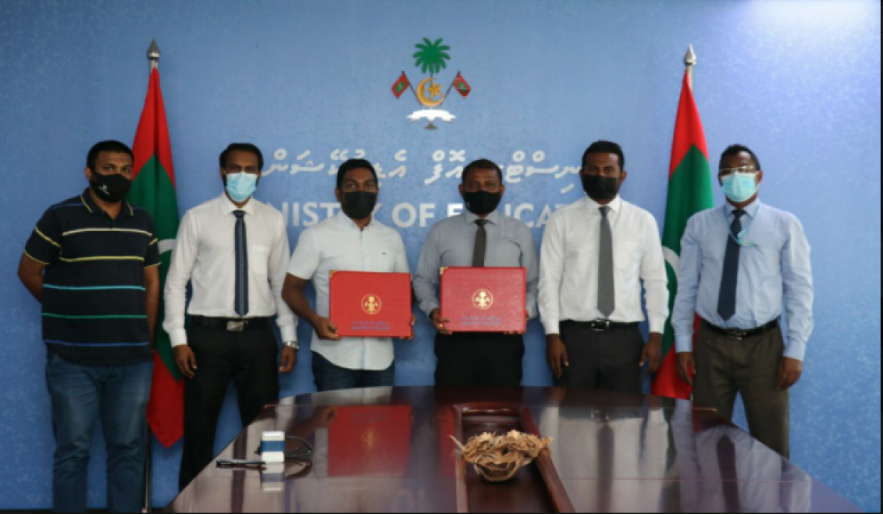 ލ. ގަން މުކުރިމަގު ސްކޫލް އޮފީސް އިމާރާތުގެ މަސައްކަތް ހަވާލުކުރުމުގެ އެއްބަސްވުމުގައި ސޮއިކުރުން -- ފޮޓޯ/ އެޑިއުކޭޝަން މިނިސްޓްރީ