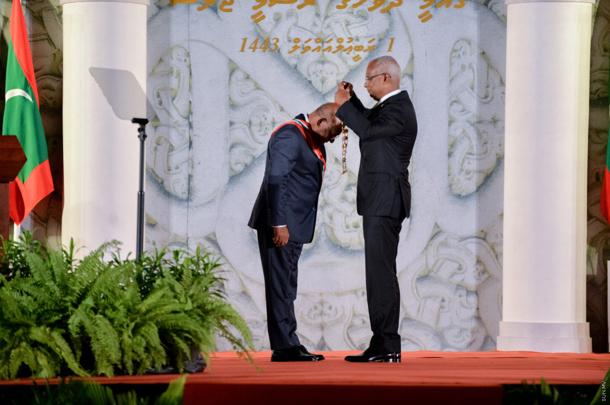 ރާއްޖޭހޭ ފޮރިން މިނިސްޓަރު އަދި އދ.ގެ 76ވަނަ އާންމު މަޖިލީހުގެ ރައީސް އަބްދުﷲ ޝާހިދަަށް ނިޝާން އިއްޒުއްދީނުގެ އިއްޒަތުގެ ވެރިކަމުގެ ލަގަބު ރައީސް އިބްރާހިމް މުހައްމަދު ސޯލިހު އަރުވައިފިއެވެ.