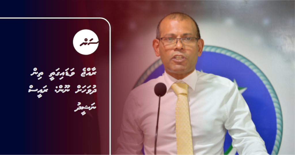 "އަޅުގަނޑު އައީ ތިން ދުވަހަށް ކަމަށް ނިންމެވީ ނޫސްވެރިން. އެއީ އެއްވެސް ތަނެއްގައި އަޅުގަނޑު ދެއްކި ވާހަކައެއް ނޫން. އެހެންވީމާ އަޅުގަނޑު ދެންނެވޭނީ މިހާރު ތިން ވަނަ ދުވަސް މިއީ. މިއަދު ފުރާ ގޮތަކަށް ހަމަޖެހިފަކައެއް ނެތް," ނަޝީދު ވިދާޅުވިއެވެ.