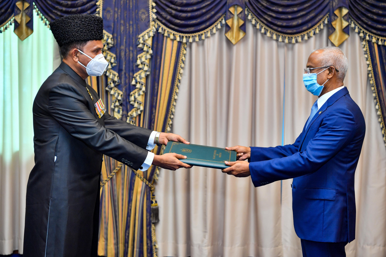 "މިއަދު ދިވެހިރާއްޖޭގެ ކޯއްޓޭތަކުގައި، ފެއްސާއި ރަތާއި ހުދުގެ ގައުމީ ދިދަ ވިހުރެމުން އެދަނީ، އެ ދުވަހު ދިވެހި ސިފައިން ވެފައިވާ މަތިވެރި ގުރުބާނީގެ ސަބަބުން. އެ ބޭފުޅުން އެ ދުވަހު މި ގައުމަށް ދެއްކެވި ގައުމީ ނަމޫނާއަކީ، މިއަދާއި މާދަމާގެ ދަރިންވެސް، ނަމޫނާއެއްގެ ގޮތުގައި ދެކެންޖެހޭނެ، އަދި އެ ބޭފުޅުންގެ ޒިކުރާ އަބަދުވެސް އާކުރަންޖެހޭނެ މަތިވެރި ނަމޫނާއެއް،" ރައީސްގެ ހިތޯބުގައި ވިދާޅުވިއެވެ.