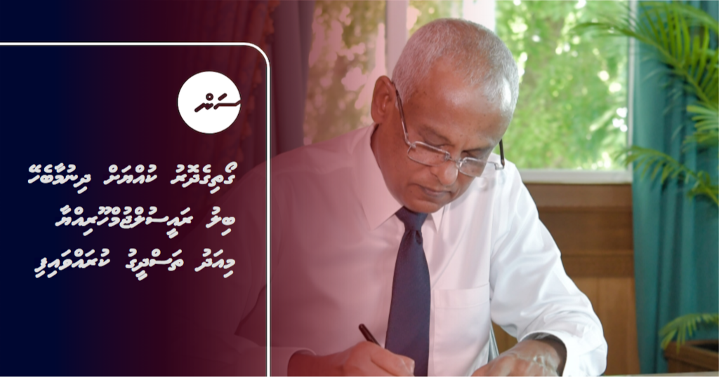 ދިރިއުޅުމަށް ޓަކައި ގޯތިގެދޮރު ކުއްޔަށްދިނުމާބެހޭ ބިލު ރައީސުލްޖުމްހޫރިއްޔާ އިބްރާހީމް މުހައްމަދު ސޯލިހް، މިއަދު ތަސްދީގު ކުރައްވައިފިއެވެ.
