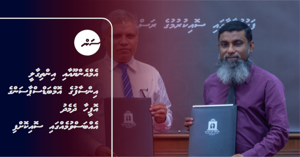 މިއެއްބަސްވުމުގައި ދިވެހިރާއްޖޭގެ ގައުމީ ޔުނިވާސިޓީގެ ފަރާތުން ސޮއިކުރެއްވީ ވައިސް ޗާންސެލަރު، ޑރ. މުހައްމަދު ޝަރީފްއެވެ.