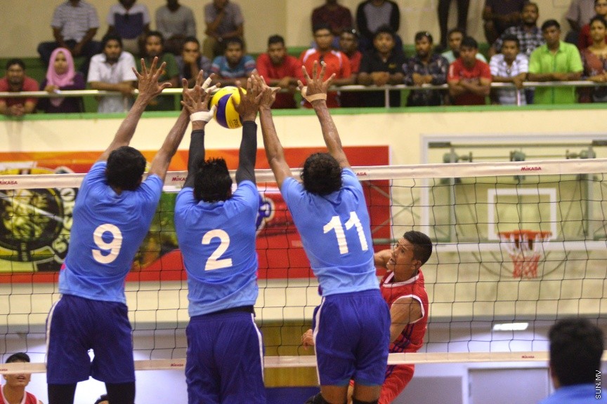 އޭޝިއަން ސެންޓްރަލް ޒޯން ވޮލީބޯޅަ މުބާރާތުގައި ރާއްޖެއާއި ނޭޕާލް ބައްދަލުކުރާ މެޗުގެ ތެރެއިން --- ސަން ފޮޓޯ/ މުހައްމަދު އަފްރާހް