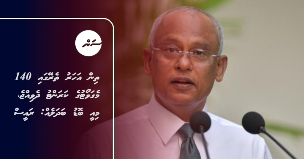 ފާއިތުވީ ތިން އަހަރު ތެރޭގައި ރާއްޖޭގެ އެކި ކަންކޮޅުތަކަށް، 140 މެގަވޮޓުގެ ކަރަންޓު ފޯރުކޮށް ދެވިއްޖެ ކަމަށް ރައީސުލްޖުމްހޫރިއްޔާ އިބްރާހީމް މުހައްމަދު ސޯލިހް ވިދާޅުވެއްޖެއެވެ.