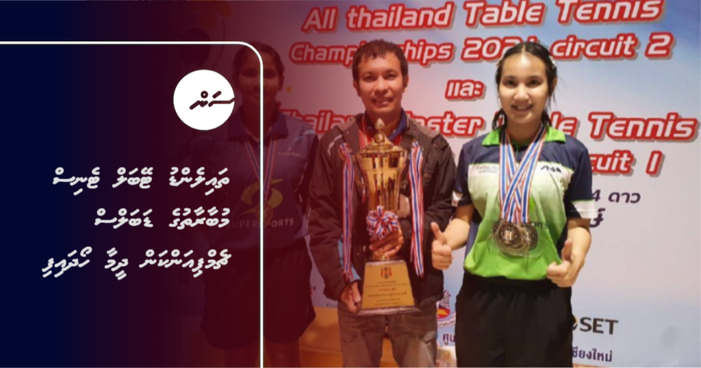 ތައިލެންޑުގައި ބާއްވާ އެންމެ ބޮޑު ޓޭބަލް ޓެނިސް މުބާރާތް ކަމަށްވާ "އޯލް ތައިލެންޑް ޓީޓީ ޗެމްޕިއަންޝިޕް" ގެ 15 އަހަރުން ދަށުގެ ޑަބަލްސް އިން ރާއްޖޭގެ ފާތިމަތު ދީމާ އަލީ ޗެމްޕިއަންކަން ހޯދައިފިއެވެ.