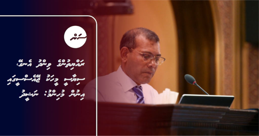 "މަޖިލީހުގެ ރައީސް އެއީ ދައުލަތުގެ އެއް ބާރު، އޭނާ ވެސް ޖޭއެސްސީގައި އިންނަން ޖެހޭ ކަމަކީ، ތެދުފުޅެއް އުނި ކަމެއް،" ނަޝީދު ވިދާޅުވިއެވެ.