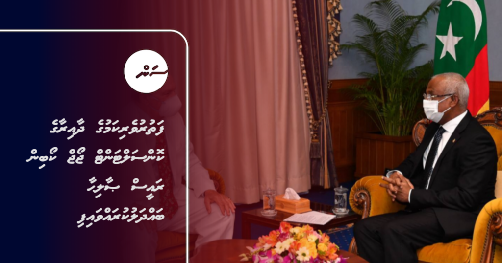މިއަދު މެންދުރު ކުރީގައި ރައީސުލްޖުމްހޫރިއްޔާގެ އޮފީހުގައި ބޭއްވެވި އެ ބައްދަލުވުމުގައި ދެ ބޭފުޅުން ވަނީ ރާއްޖޭގެ ފަތުރުވެރިކަމުގެ ސިނާއަތު ވަރުގަދަ ކުރުމާގުޅޭގޮތުން މަޝްވަރާކުރައްވާފައެވެ.
