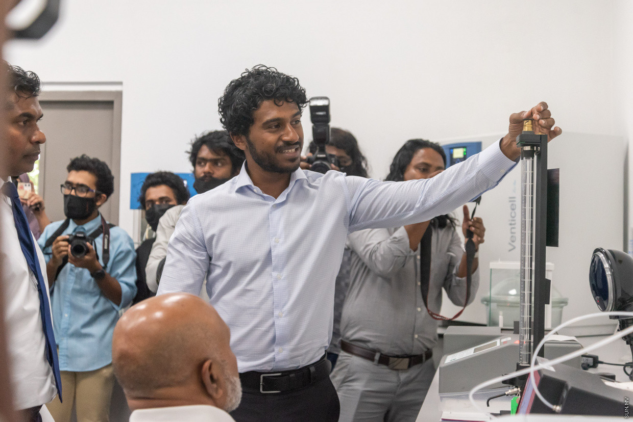 މިއަދު އެސްޓީއޯ ޓްރޭޑް ސެންޓަރުގައި އޮތް ރަސްމިއްޔާތެއްގައި މި ލެބް ހުޅުއްވައިދެއްވީ އެ ކުންފުނީގެ ޗެއާމަން ޙާމިދު ނަޝީދު މުޙައްމަދާއި ބޯޑު މެންބަރު އާމިނަތު ރުޝްމާއެވެ.