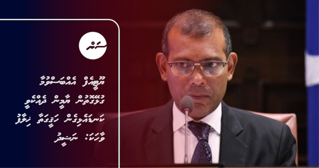 އާދަމް ޝަރީފް ހުށަހެޅުއްވި މައްސަލަ މަޖިލީހުގެ ސަލާމަތީ ހިދުމަތްތަކާ ބެހޭ ކޮމިޓީން ދިރާސާ ކުރިކަން ފާހަގަ ކުރައްވަމުން ނަޝީދު ވިދާޅުވީ އެ އެއްބަސްވުންތަކާ ބެހޭގޮތުން ސުވާލު ކުރުމަށް ޑިފެންސް މިނިސްޓްރީ އާއި އެމްއެެންޑީއެފްގެ ފަރާތްތައް މަޖިލީހަށް ހާޒިރުކޮށް އެއްބަސްވުންތަކާ ބެހޭ ޕްރެޒެންޓޭޝަން ކޮމިޓީގެ މެމްބަރުންނާ ހިއްސާ ކުރި ކަަމަށެވެ.
