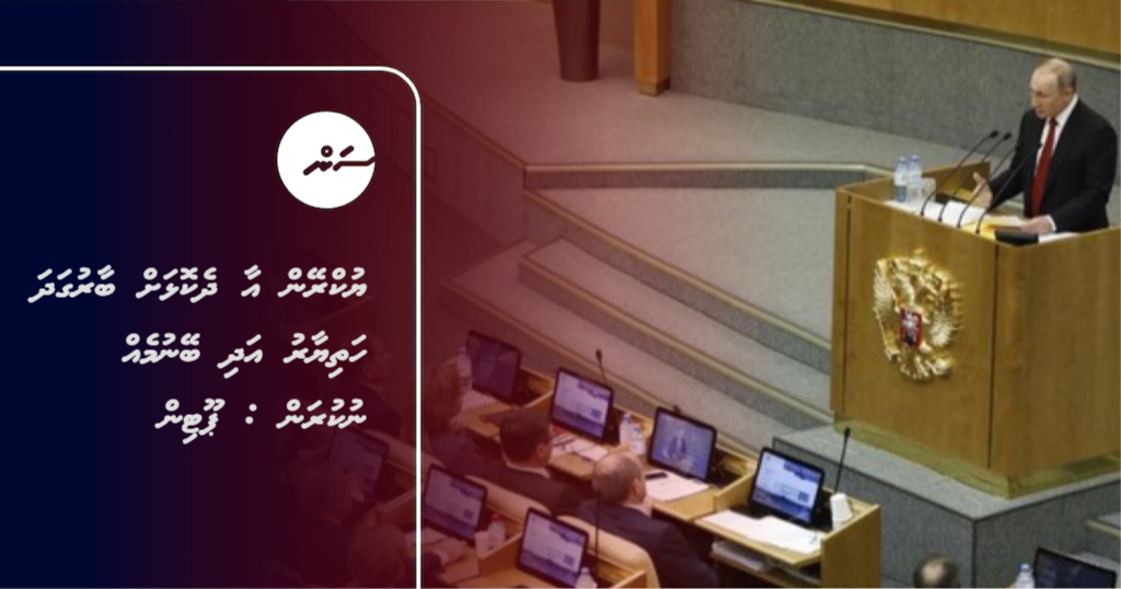 ޔުކްރޭން އާ ދެކޮޅަށް ރަޝިޔާ ފަށާފައިވާ ހަނގުރާމައާބެހޭ މައުލޫމާތު ރަޝިއާގެ ޕާލަމެންޓް ކަމަށްވާ "ދޫމާ" އަށް ދެއްވަމުން ޕޫޓިން ވިދާޅުވީ ޔުކްރޭންގައި ރަޝިއާ ހާސިލުކުރަން ބޭނުންވާ ލަނޑުދަނޑިތައް ހާސިލުކުރާނެކަމަށާ އެކަމަށް ހުރަސްއެޅުމުގެ ފުރުސަތު އެއްވެސް ގައުމަކަށް ނުދޭނެ ކަމަށެވެ.