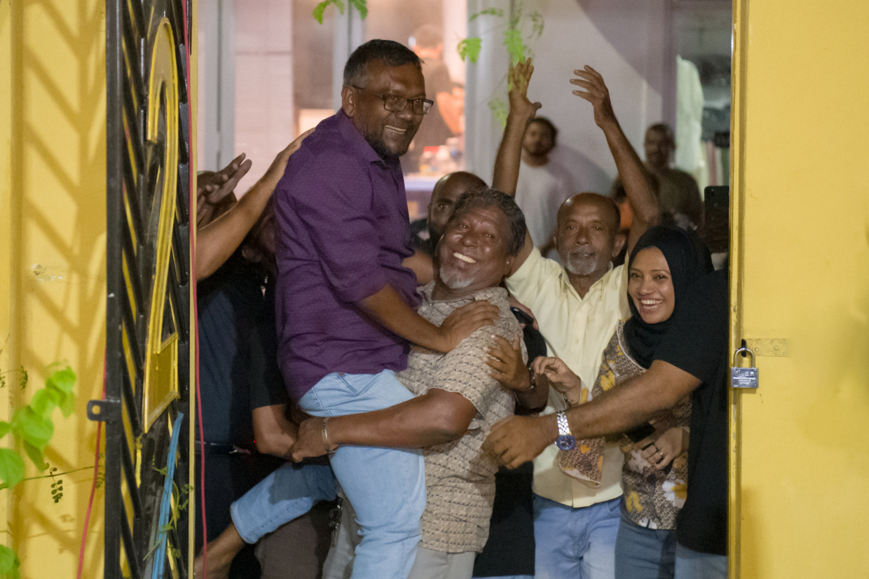 އިންތިޚާބުގެ ކާމިޔާބީއާ އެކު ރޮޒައިނާ ސަޕޯޓަރުންނާއެކު އުފާފާޅުކުރަނީ --- ސަން ފޮޓޯ/ މުހައްމަދު ހައްޔާން