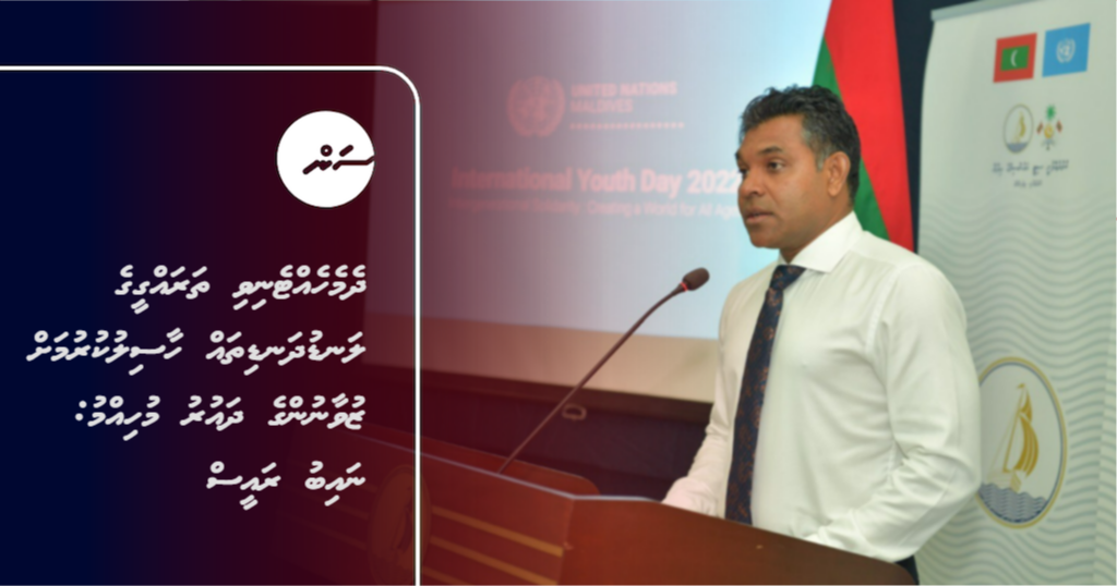 ޔޫތު މިނިސްޓްރީ އާއި ކުޅުދުއްފުށީ ސިޓީ ކައުންސިލާއި ރާއްޖޭގައި ހުންނަ އދ. ގެ އޮފީސް ގުޅިގެން ބައިނަލްއަޤުވާމީ ޒުވާނުންގެ ދުވަސް ފާހަގަކުރުމާއި ޒުވާނުންގެ ދުވަހުގެ ހަރަކާތްތައް ފެށުމުގެ ގޮތުން ކުޅުދުއްފުށި ސިޓީގައި ރޭ ބޭއްވި ޖަލްސާގައި ވާހަކަފުޅު ދައްކަވަމުން ފައިސަލް ވަނީ ކޮވިޑް19 އާއި ގުޅިގެން ދުނިޔެއަށް ކުރިމަތިވި ދަތިތަކާއި އަދި އިޤުތިޞާދީ އިޖުތިމާއީ ގޮންޖެހުންތަކާ ގުޅޭ ގޮތުން ވާހަކަދައްކަވާފައެވެ.