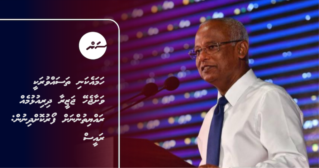 ރައީސް ކަމުގައި ހުންނެވުމުގެ ހަމައެކަނި ބޭނުމަކީ ވަށާޖެހޭ ޖަޒީރާ ދިރިއުޅުމެއް ރާއްޖޭގެ ހުރިހާ ރައްޔިތުންނަށް ފޯރުކޮށްދިނުން ކަމަށް ރައީސުލްޖުމްހޫރިއްޔާ އިބްރާހީމް މުޙައްމަދު ޞާލިޙު މިއަދު ވިދާޅުވެއްޖެއެވެ.