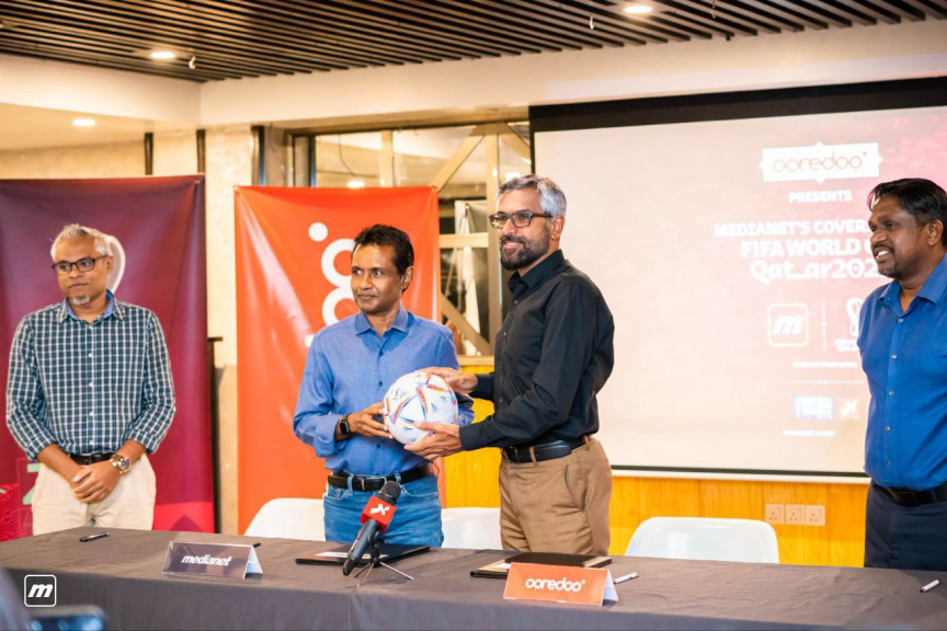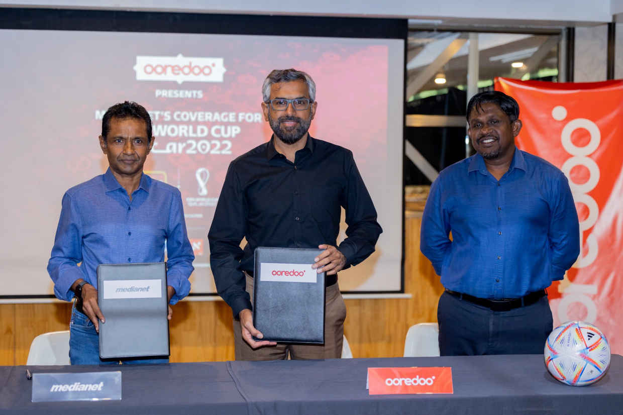 މީޑިއާނެޓް ވޯލްޑްކަޕް ކަވަރޭޖްގެ ޓައިޓަލް ޕާޓްނަރަކަށް އުރީދޫ ހަމަޖައްސަައި އެއްބަސްވުމުގައި ސޮއި ކުރުމުގެ ތެރެއިން--- ފޮޓޯ/ މީޑިއާނެޓުން