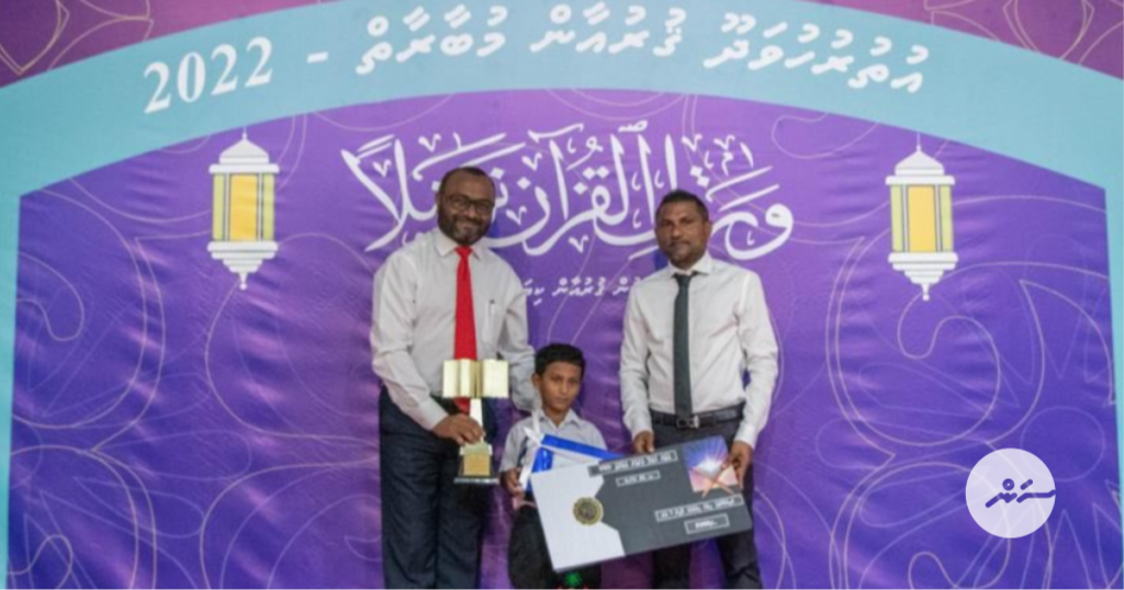 ރޭ ބޭއްވި އެ ޤުރުއާން މުބާރާތް ނިންމުމުގެ ރަސްމިއްޔާތުގައި ބަލައިގެން ކިޔުމުގެ ގޮފިންނާއި ހިތުން ކިޔެވުމުގެ ގޮފިން ވަނަވަނައަށް ދިޔަ ކުދިން ހޮވައި ވަނީ އިނާމު ދީފައެވެ. އަދި އެ ދެގޮފިން އެންމެ މޮޅު ސުކޫލުތައް ވެސް ވަނީ ހޮވައި އިނާމު ދީފައެވެ.