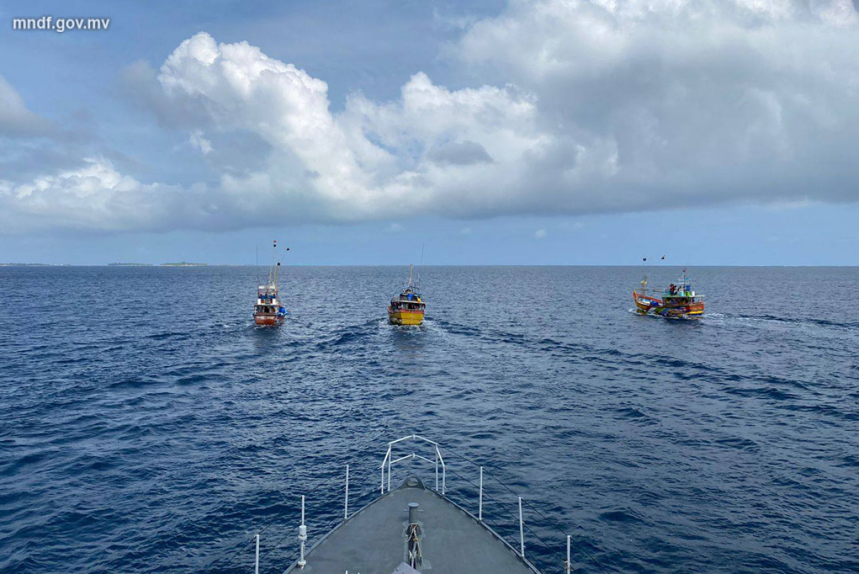 ދިވެހިރާއްޖޭގެ ކަނޑުގެ ސަރަހައްދުގައި ގަވާއިދާ ޚިލާފަށް މަސްވެރިކަން ކުރަމުންދިޔަ ސްރީލަންކާގެ ތިން މަސްބޯޓެއް އެމްއެންޑީއެފް ކޯސްޓްގާޑުގެ ބެލުމުގެދަށަށް ގެންގޮސްފިއެވެ.