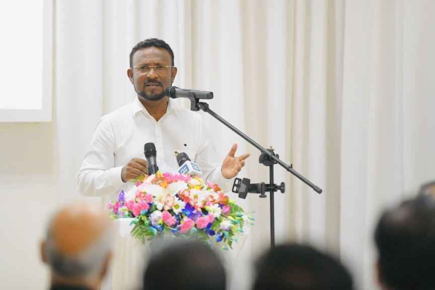 ޕާކިސްތާނަށް އެހީވުމަށް ކުރިއަށްގެންދިޔަ ޑިނާ ނައިޓުގައި، ދިވެހި ބަހުގެ އެކެޑަމީގެ ރައީސް ޑރ. އަޝްރަފް ޢަބްދުއްރަޙީމް ވާހަކަދައްކަވަނީ -- ފޮޓޯ ސަން ނާއިލް ހުސައިން