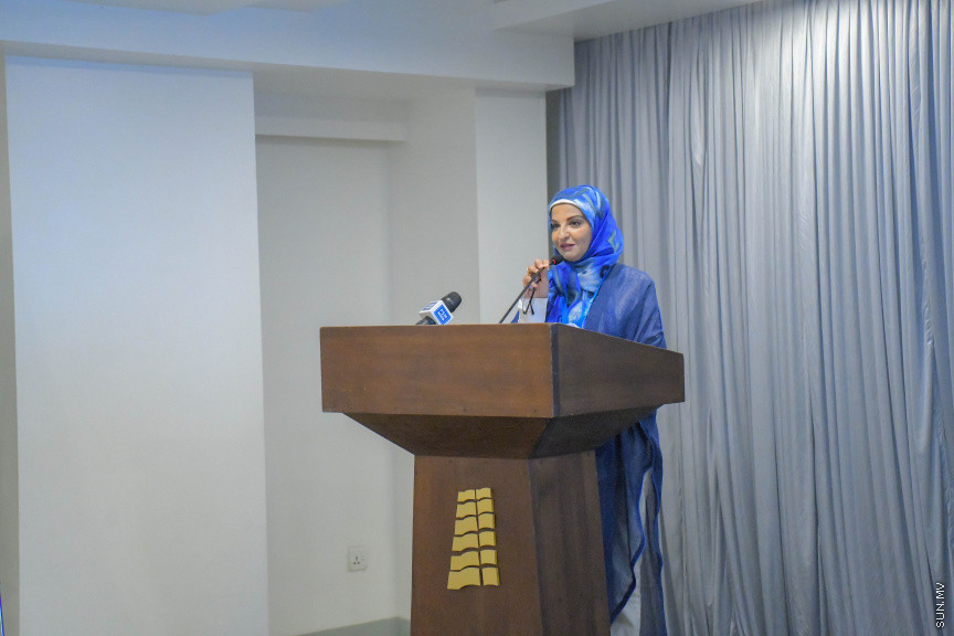 ޔުނިސެފުގެ އެކްޓިން ރެޕްރެޒެންޓޭޓިވް ޑރ. ސަޖާ ފާރޫގް އަބްދުﷲ އެ ރަސްމިއްޔާތުގައި ވާހަކަދައްކަވަނީ --- ސަން ފޮޓޯ/ މުހައްމަދު ޝާތިއު އަބްދުﷲ