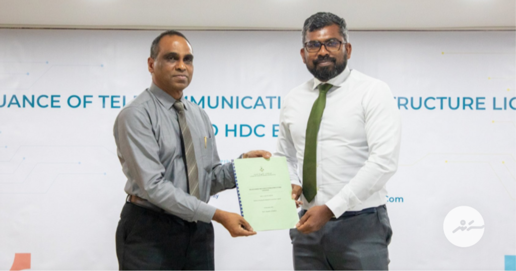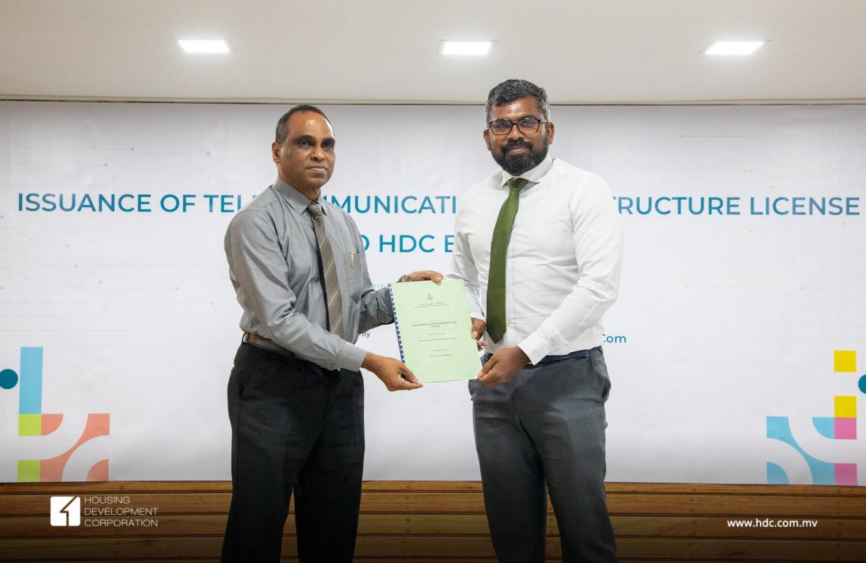 އެޗްޑީސީ އާ ޓެލެކޮމިއުނިކޭޝަން އިންފްރާސްޓްރަކްޗާ ލައިސަންސް ހަވާލުކުރުމުގެ ރަސްމިއްޔާތުގެ ތެރެއިން / ފޮޓޯ: އެޗްޑީސީ