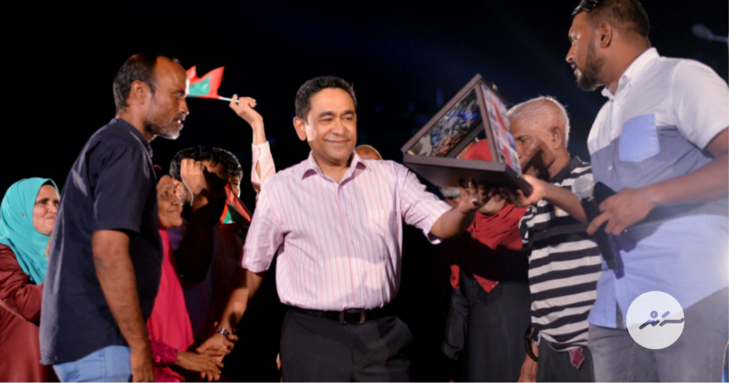 ޔާމީންގެ އަތްޕުޅުގައި ހިތްޕަވައިގެން ރަށްރަށަށް ވަޑައިގެން ތާއީދު ހޯއްދެވީ މައުމޫނެވެ. ގިނަ ބަޔަކު އެ އިންތިޚާބުގައި ޕީޕީއެމަށް ވޯޓުލީ މައުމޫނަށް އޮތް ލޯތްބެއްގެ ބޮޑު ކަމުންނެވެ. އެމަނިކުފާނަށް ކުރައްވާ އިތުބާރެއްގެ ސަބަބުންނެވެ.