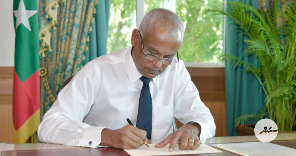 ރާއްޖެއަށް ކެމިކަލް އިންޕޯތްކުރުމަށް ނުވަތަ އެކްސްޕޯޓްކުރުމަށް ލައިސަންސެއް ހޯދުން ލާޒިމްވާ ގޮތަށް ކަނޑައަޅައި ކެމިކަލް ހަތިޔާރު މަނާކުރުމުގެ ބިލް ރައީސުލްޖުމްހޫރިއްޔާ އިބްރާހީމް މުހައްމަދު ޞާލިހް މިއަދު ތަސްދީގުކުރައްވައިފިއެވެ.