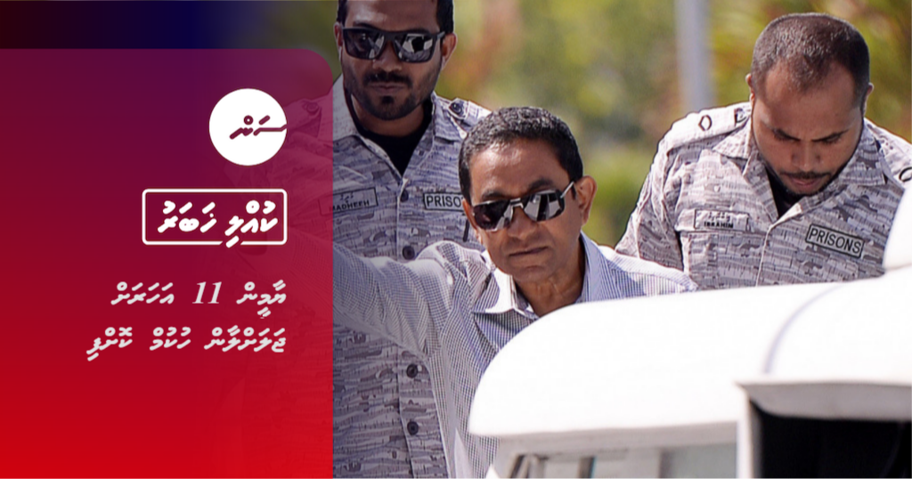 އިދިކޮޅު ލީޑަރު ރައީސް އަބްދުﷲ ޔާމީން އަބްދުލްގައްޔޫމް 11 އަހަރަށް ޖަލަށްލާން ކްރިމިނަލް ކޯޓުން މިއަދު ހުކުމްކޮށްފިއެވެ.